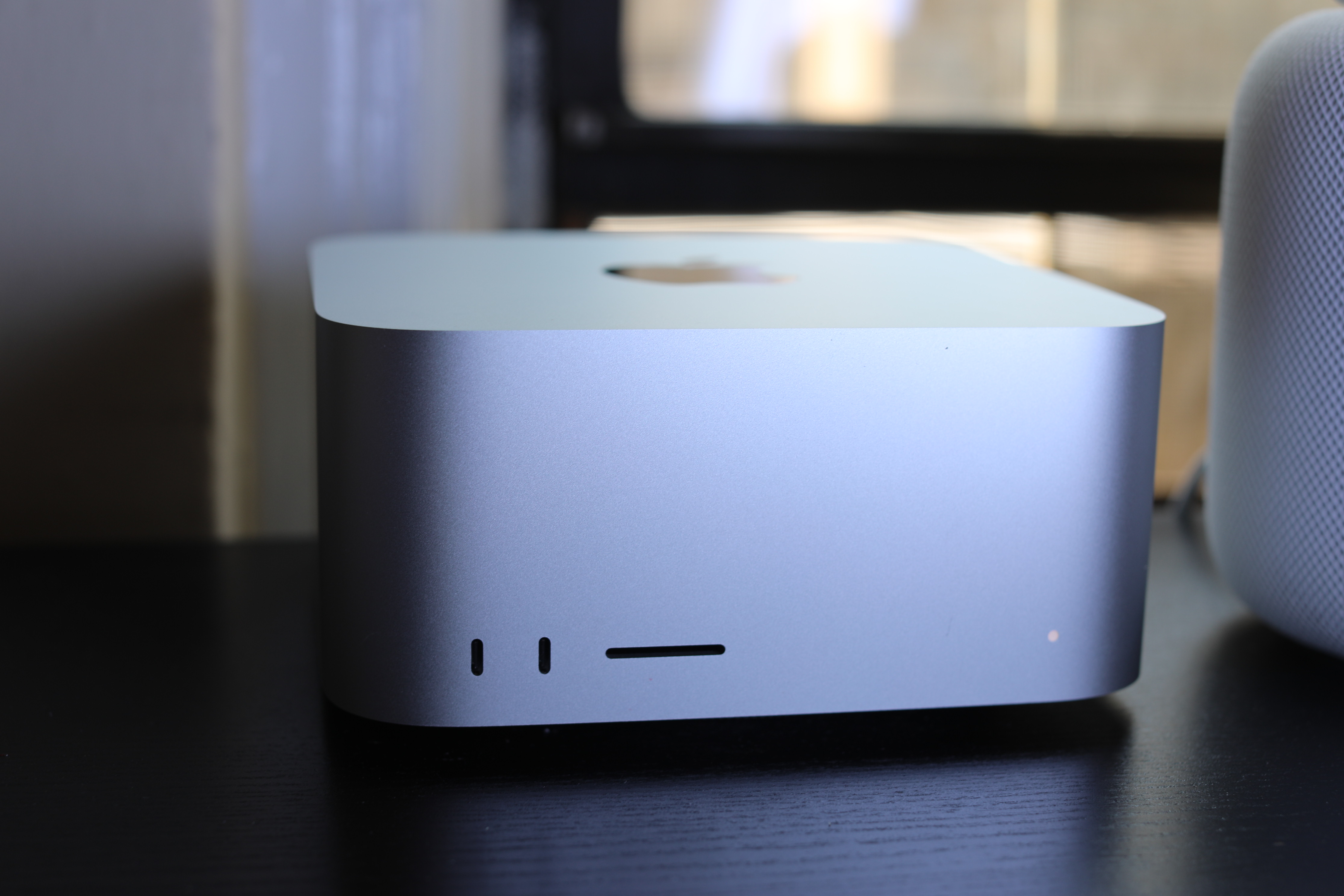 Physically, the new Studio is indistinguishable from last year’s model. It’s a hollowed-out chunk of machined metal brushed with the customary Mac gloss. Even the reflective Apple logo up top borrows directly from the MacBook line. At 3.7 inches, it’s a little under three times the height of the Mini (the Pro stands nearly two feet tall) and 0.2-inches longer and wider than the Mini’s 7.75 inches. In addition to components, the taller size adds in necessary airflow, but it’s still small enough to live under your Studio Display. It’s quite dense, weighing in at 5.9 pounds to the Mini’s 2.6. The Pro is in a weight class all its own at 37.2 pounds.