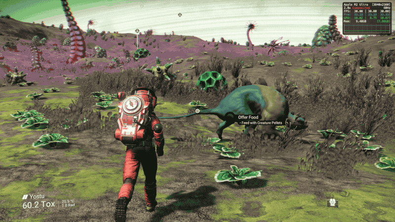 That, coupled with developer tools like Metal and the 2010 arrival of Steam have laid the groundwork for a comeback of sorts. But the results are no doubt coming slower than Apple would prefer. I played some No Man’s Sky this morning. The game just dropped on Steam and is set for the Mac App Store soon. Aside from a bit of stuttering on warm up, it was a smooth experience. With the M2 Ultra, you can push things to a 3840 x 2160 resolution (peep the new Metal Performance HUD in the above gif).