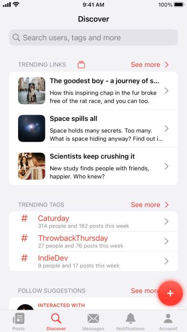 One of the biggest challenges with Mastodon is to discover people to follow. Radiant provides recommendations based on people you follow and have interacted with. Nelson said that recommendation features including people, trending hashtags, and popular articles are dependent on the instance where your account has been hosted. He said that he is trying to tap into bigger instances to include some trends from those servers.