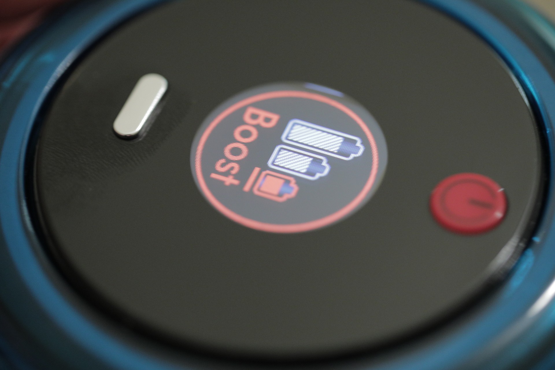 In place of the trigger mechanism is a small display on the vacuum’s head and a pair of buttons. Up top is power and below is a selection button that cycles through three modes: Eco, Medium and Boost — green, blue and red respectively. That last one is yet another reminder to use sparingly. Medium also doubles as an Auto mode, which will adapt the power based on use. Eco is likely fine much of the time, but Boost comes in handy when the dirt is really in there.