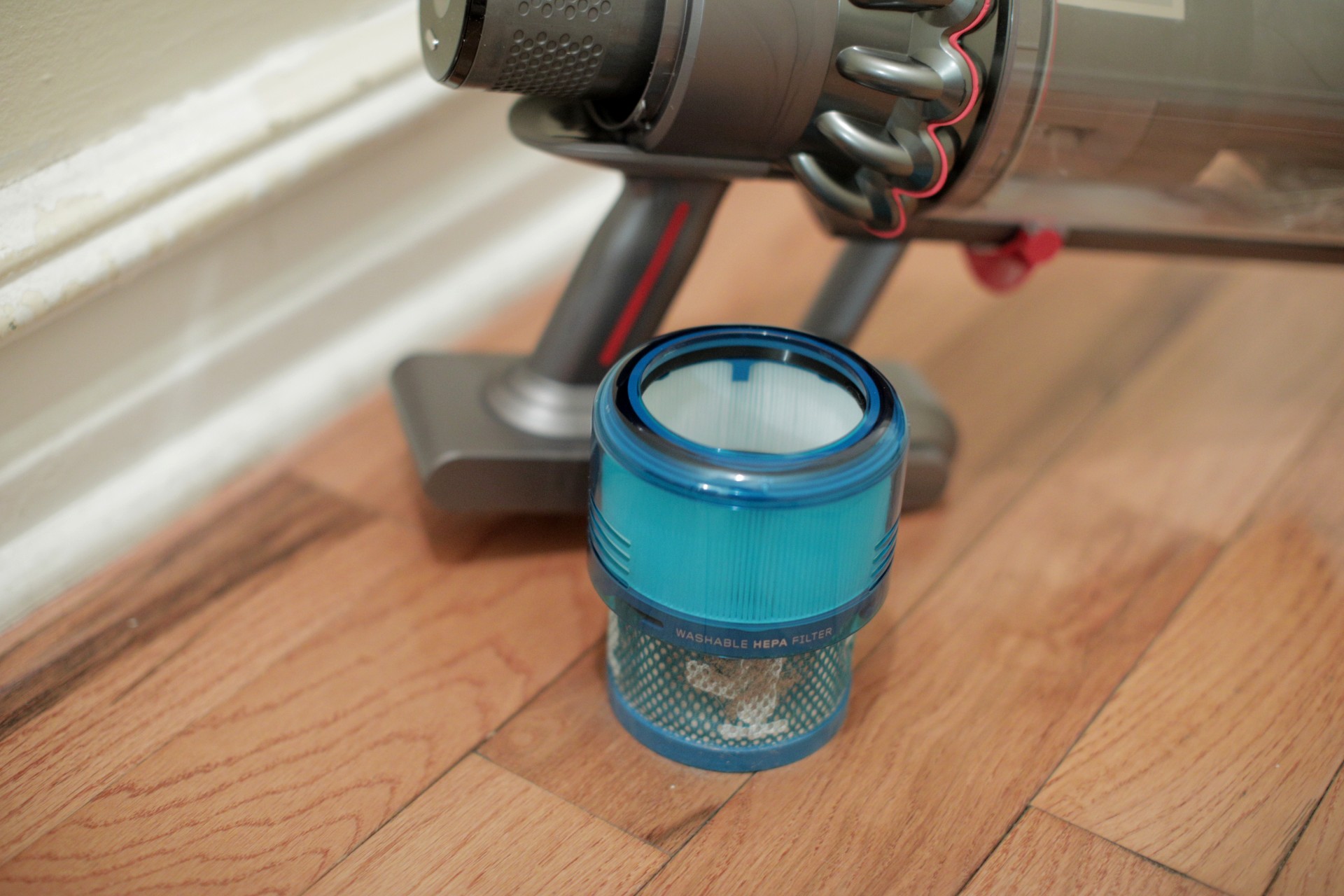 The bin, along with various other parts, is removed easily for cleaning. Most vacuums are modular to the extent that attachments can be replaced and bins removed. That’s certainly the case here — different bits are removed and reattached easily. The top lifts off easily for a quick filter replacement. As ironic as it might be, your vacuum gets dirty and should be wiped down based on how frequently you use it. And let’s be real, if you’re spending this much on a good-looking vacuum like this, you’re going to want to keep it fairly clean.
