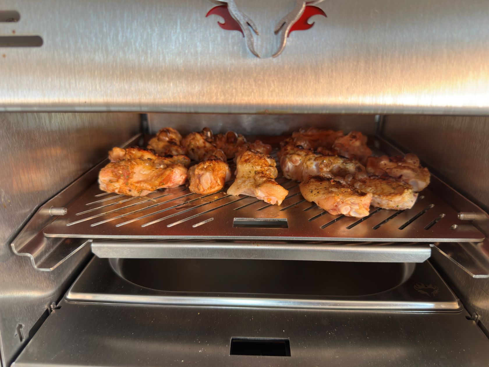Obviously the first thing I cooked on the Schwank was steak, and it does in literally less than 10 minutes what used to take me at least an hour with a sous-vide/cast iron combo. Using the adjustable shelf is incredibly intuitive once you watch a few videos on how long you should leave it at various levels, but basically with most steak around an inch or more thick it’s as easy as putting it up to the top for two minutes per side, then lowering it down for another couple minutes to get a perfect medium rare cook with a perfect sear.