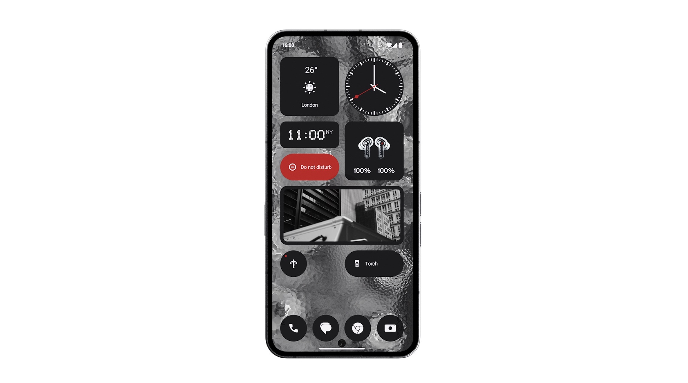 The aesthetic touches now reach beyond the hardware design, with the addition of Nothing OS 2.0, which sits atop Android 13. The skin adopts a dark, monochromatic language with hints of red and text spelled out in circuit board etched style. Think of it as something akin to a brand specific Material You, with some added flourishes. “Nothing has reimagined home and lock screen utility with widgets so users can access key functions without having to even open their apps,” the company writes. “Nothing OS 2.0 empowers users to customize grid design, widget size, and color themes, while introducing new folder layouts and illustrated covers.”