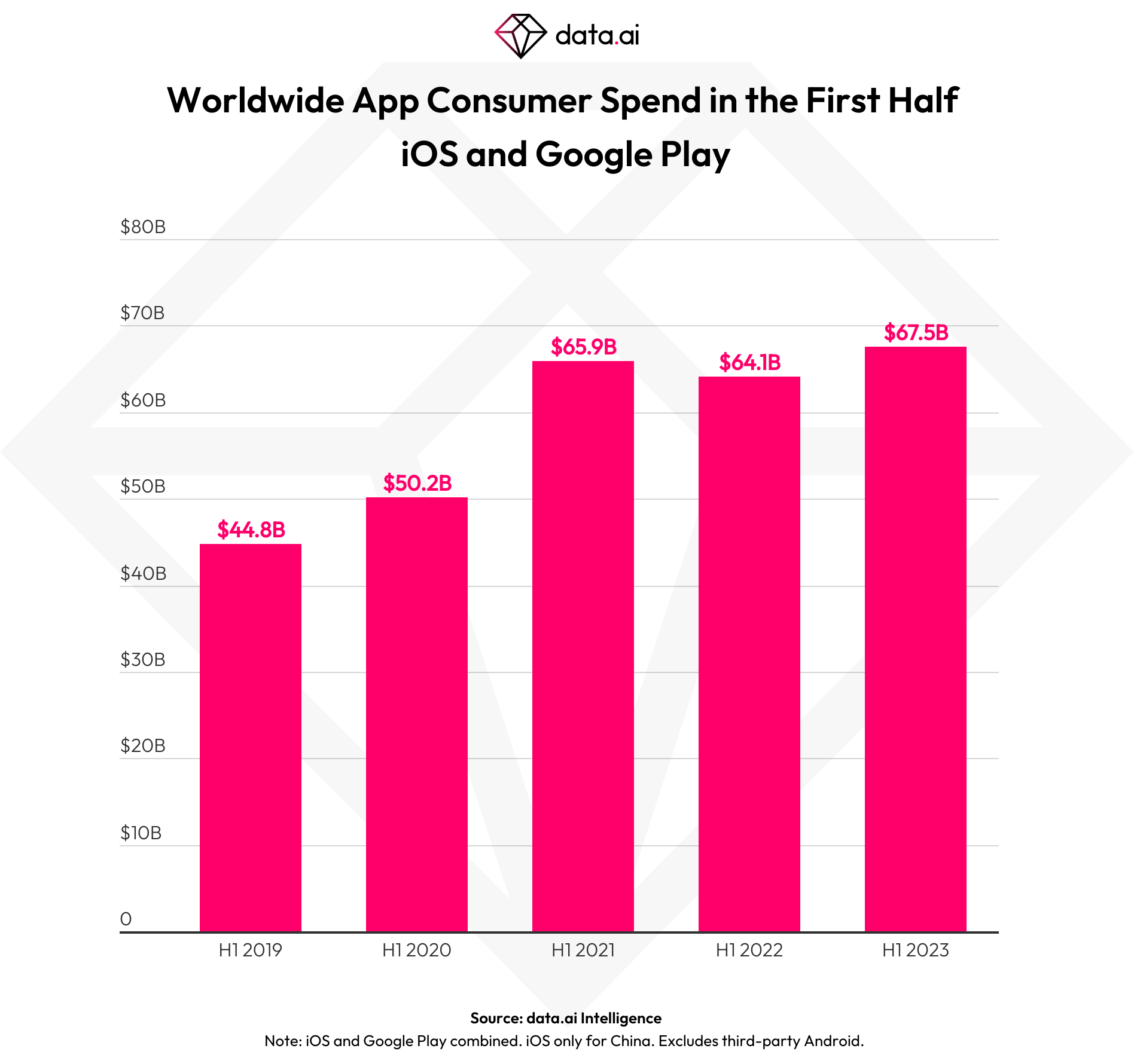 That growth continued into the first half of the year as consumers spent a record $67.5 billion on apps and downloaded 76.8 billion apps globally across the iOS App Store and Google Play. (This analysis does not include the third-party app stores as the full-year report does, we should add.)