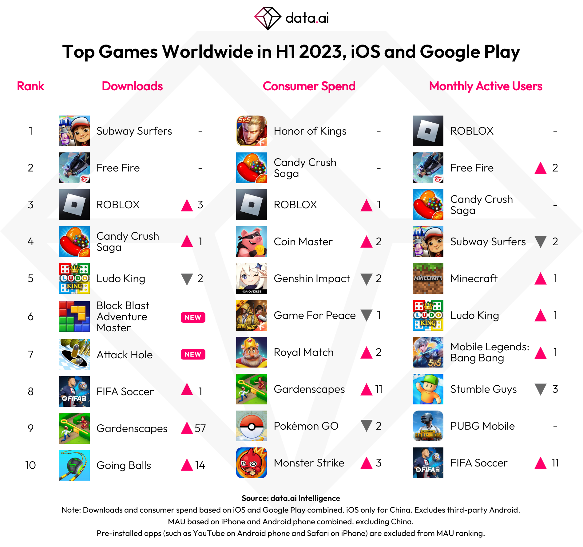 Top games were Subway Surfers, Free Fire, Roblox, Candy Crush Saga, Ludo King, Block Blast Adventure Master, Attack Hole, FIFA Soccer, Gardenscapes and Going Balls.