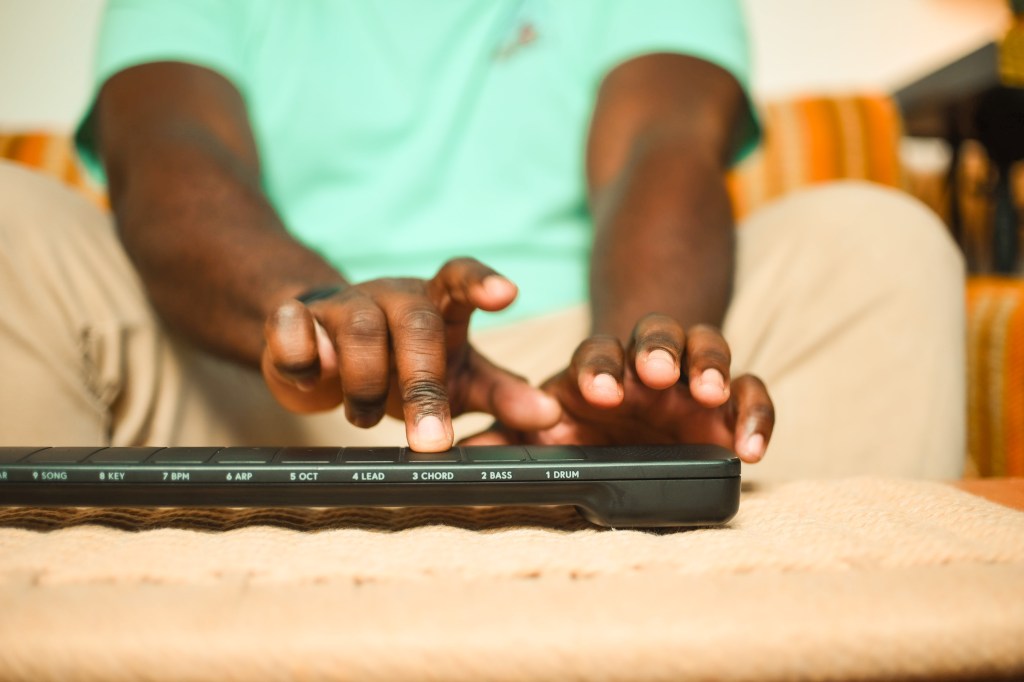 The interface is comprised of a dozen musical pads that can be pressed, tapped, tilted and otherwise manipulated to create a different variations on the sound. The “Smart Strum” feature, meanwhile, mimics guitar chords, keeping the song in tune without the need for any real musical skill.
