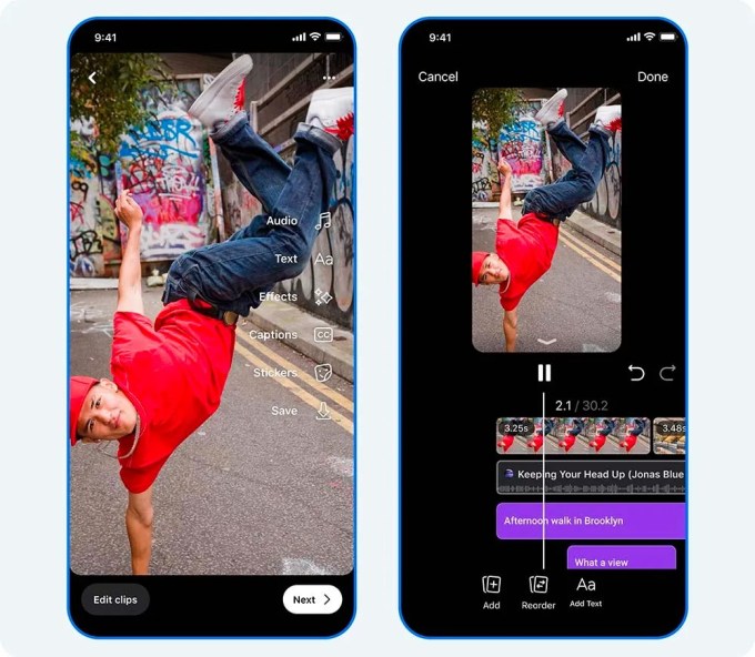 The company is porting editing tools for Reels to videos for the main feed — this way, people can create short and long videos from one place. Meta is rolling out these tools to Meta Business Suite users already. The company is releasing additional editing features, such as the ability to adjust speed, reverse or replace a clip. Meta is also introducing support for HDR videos on Reels — both video uploading and playback.