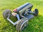 The Blade’s design is lovely and highly functional. It looks like a farm tractor from Halo. The open wheel design starkly contrasts the Roomba-like form factor of other robotic mowers. If the tires get muddy, spray them with a hose. There’s even a large handle in the back to make carrying easier.