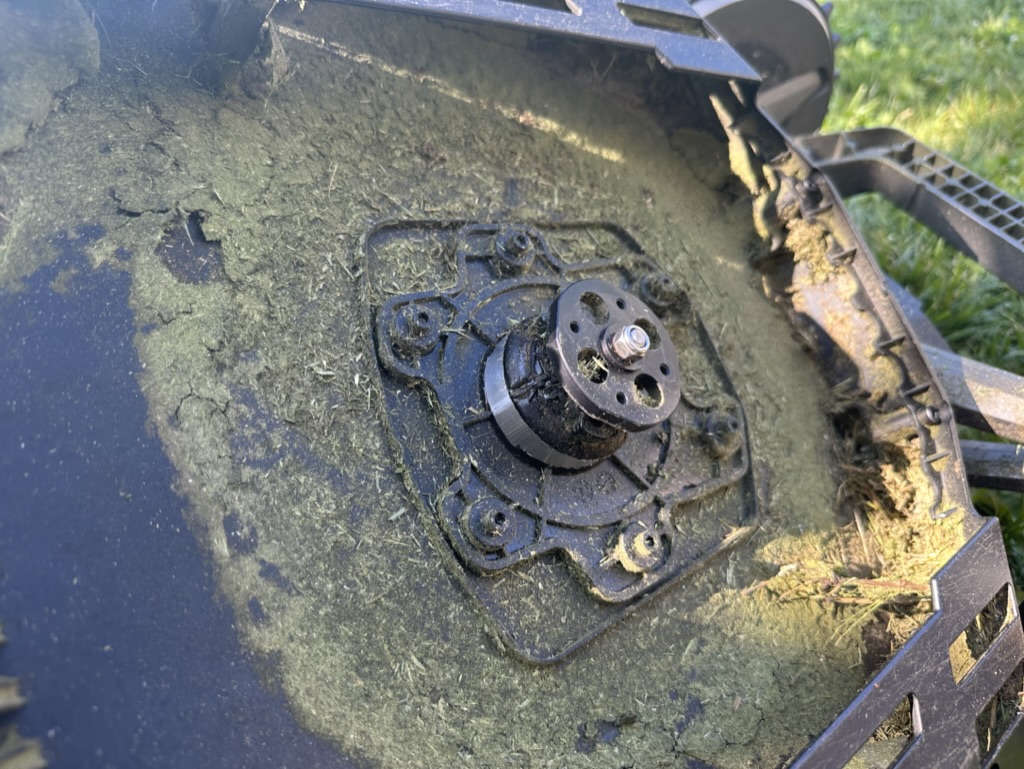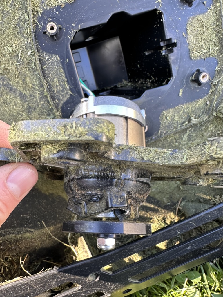 It was here I saw the problem. The shiny clean surface of the motor was peeking through a small crack on the motor mount. I wiggled the top of the motor. The crack wiggled open wider. I twisted the top of the motor, which ripped free of its cheap housing (with the top of the mount still attached). It’s easy to see why the mower failed: The motor doesn’t have enough support, and a catastrophic failure is near once the mount starts to fail.