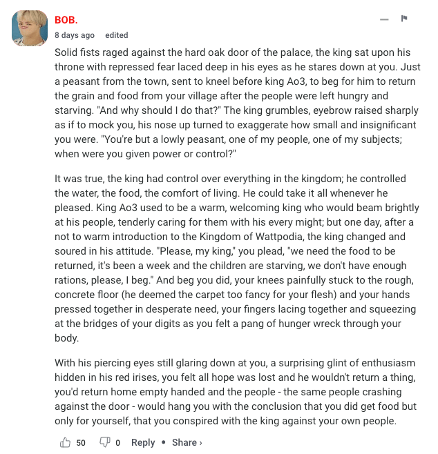 I’ve joined in on comment threads where we all try to count to 69420 and create oodles of spam in the process, but the comments on AO3’s Downdetector page are not like that. These aren’t people trying to just keep commenting on the Downdetector page because it’s funny to make the number go up. People are having actual conversations about asexuality in fan fiction, the pitfalls of Wattpad, and managing mental health conditions. They’re also talking about Homestuck and sometimes bullying each other, which is not so great, but this is what happens on the internet.