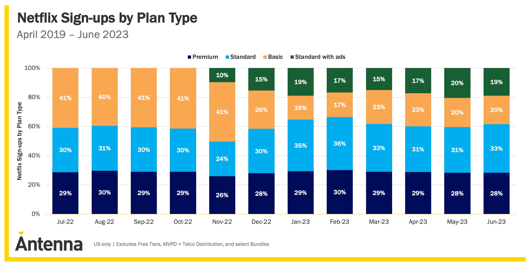 The move comes ahead of the company’s announcement of its Q2 2023 financials. In May, Netflix said that its ad-supported tier has more than 5 million users across the globe. An analysis by Antenna suggests that Netflix’s ad-supported plans accounted for 17-20% of new signups for the March to June quarter.