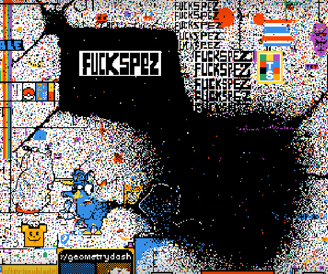 The canvas changes quickly, and it will likely be unrecognizable by the end of the project. But so far, r/place is sending a clear, unified message that the user base of Reddit isn’t happy with Huffman’s leadership. Even within these protesting groups, there are divisions — some people want to paint the whole canvas black, and have begun their efforts in what they are calling “the black hole.” Others are on the “fuck spez” train. And some people think that simply engaging in r/place is giving the Reddit executives what they want, which is more and more clicks on their site.