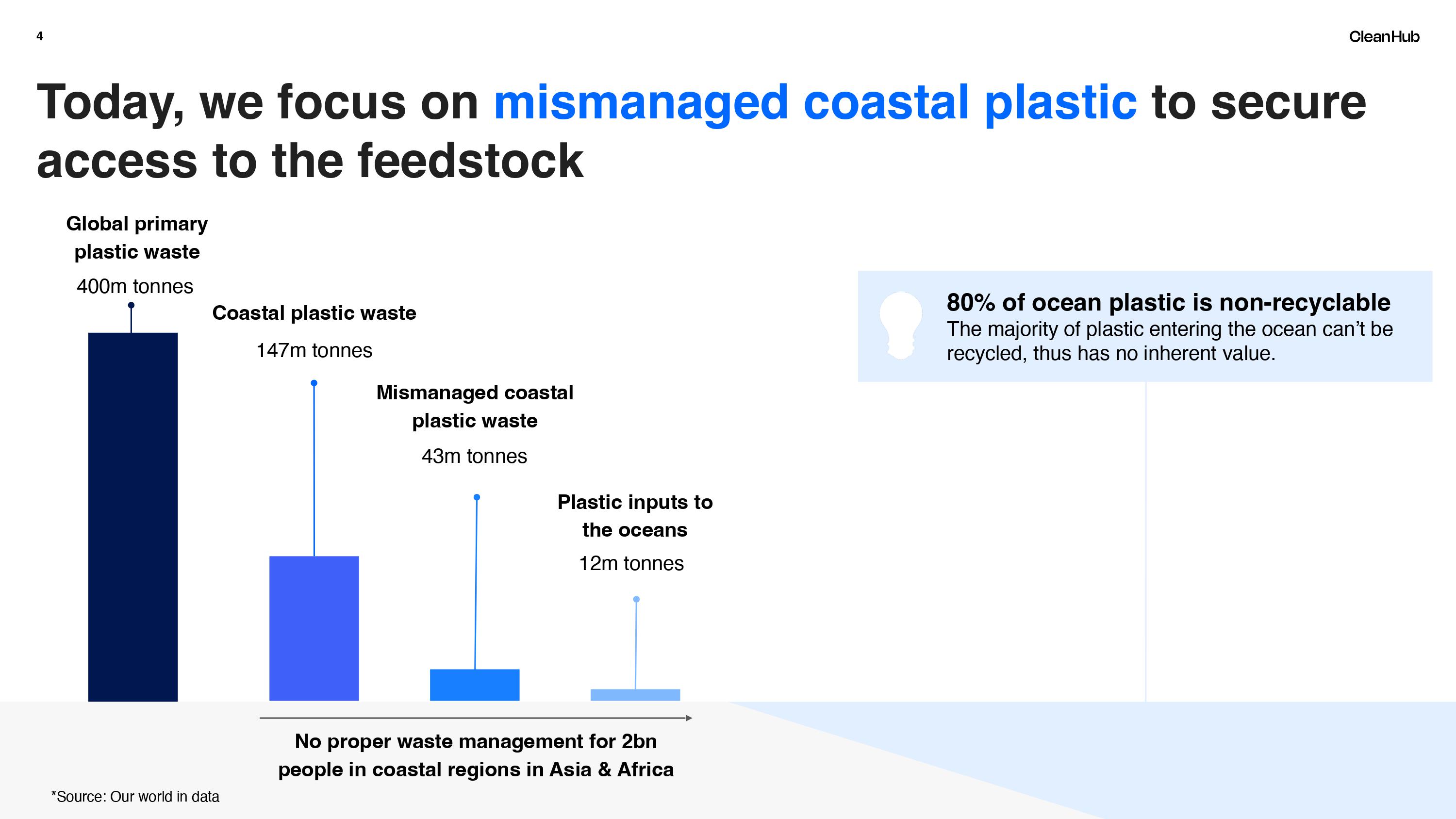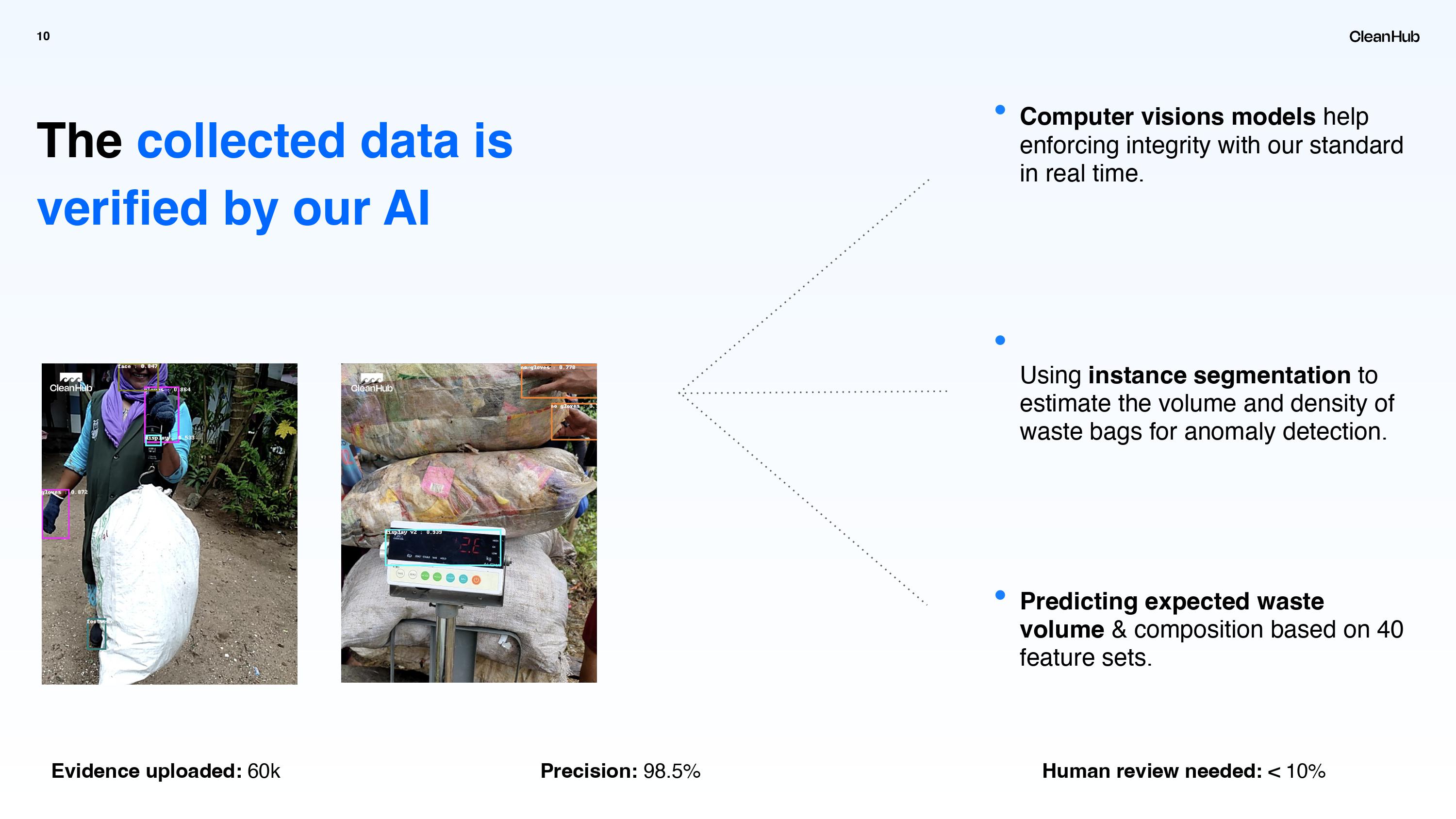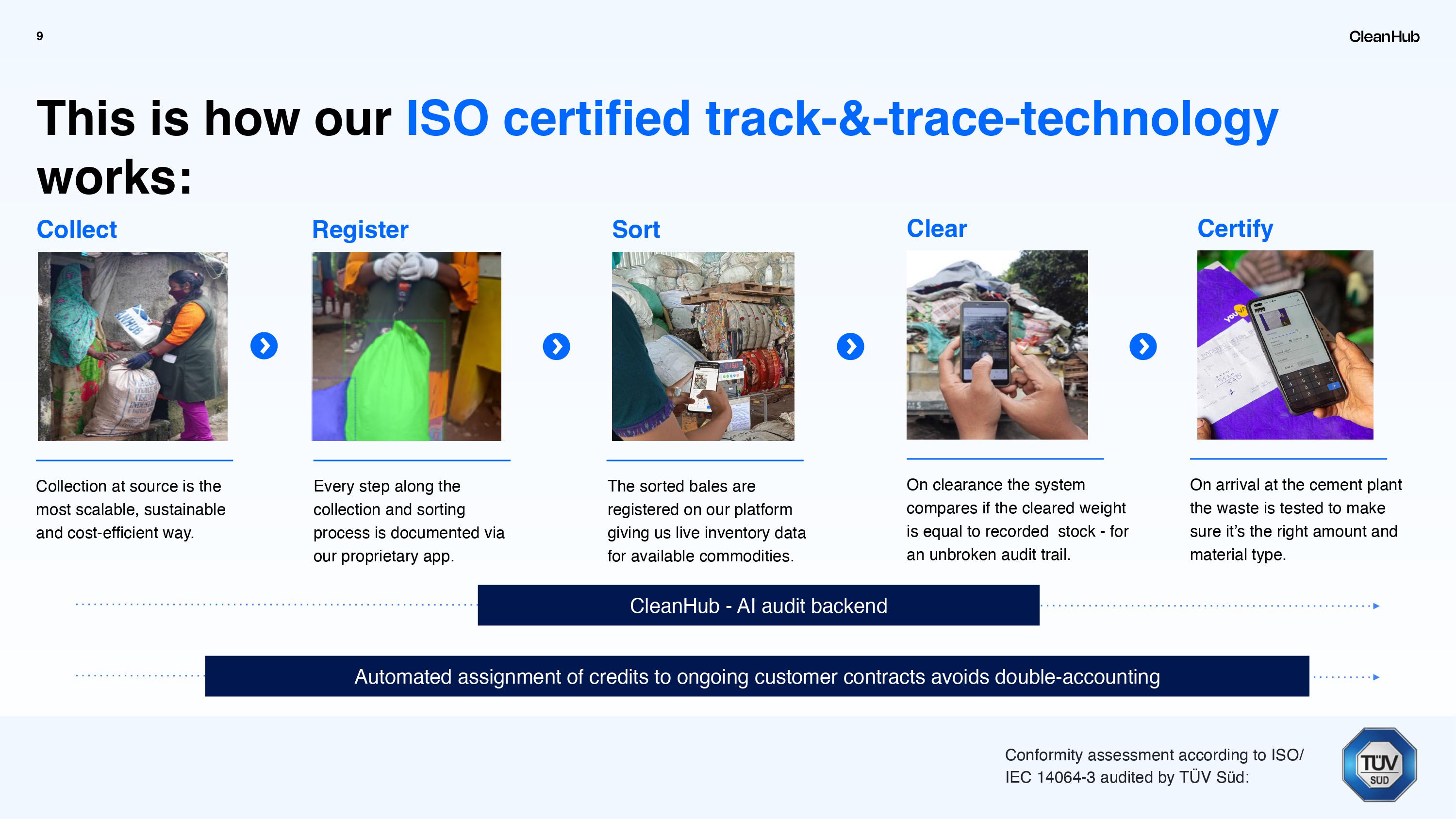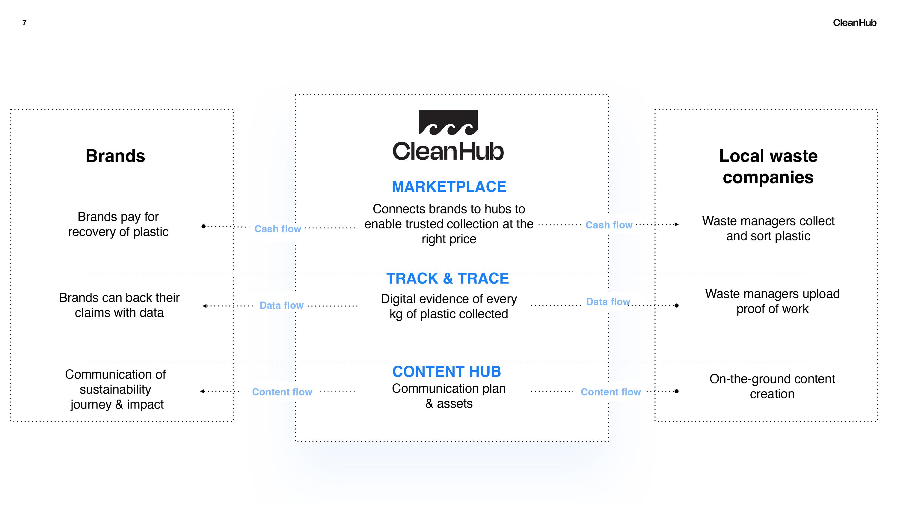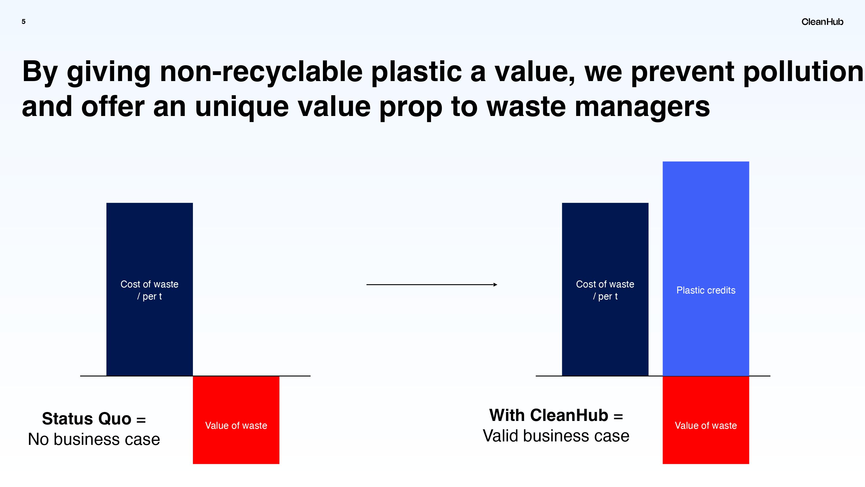 The biggest innovation CleanHub brings to the space is the introduction of plastic credits, which, if I’m reading this slide right, can make waste tradeable in a way it wasn’t before.