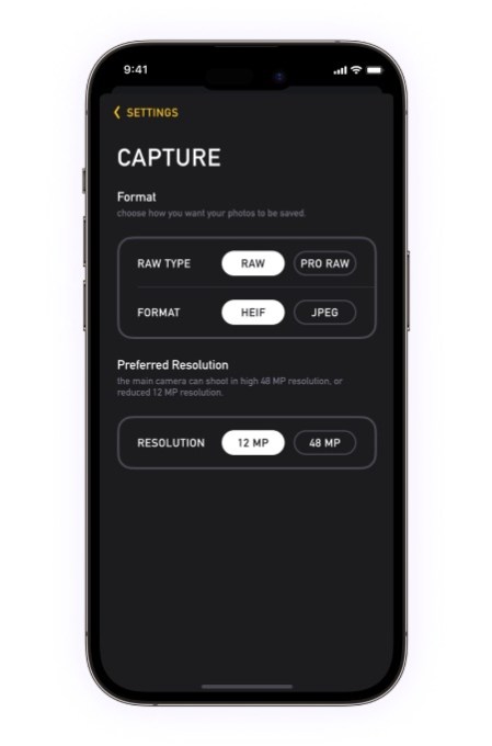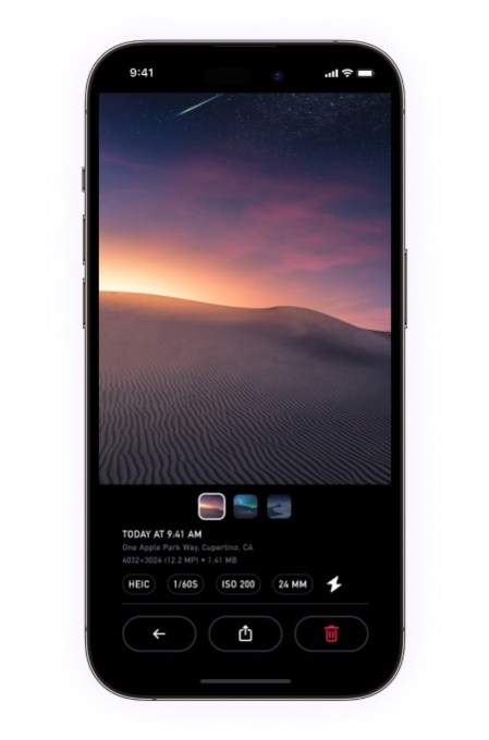 The app supports JPEG, HEIF, True RAW and ProRAW formats, and users can save a combination of JPEG/HEIF with RAW. Users can also easily look at all photos they took in a session without leaving the app and discard the ones they don’t want.
