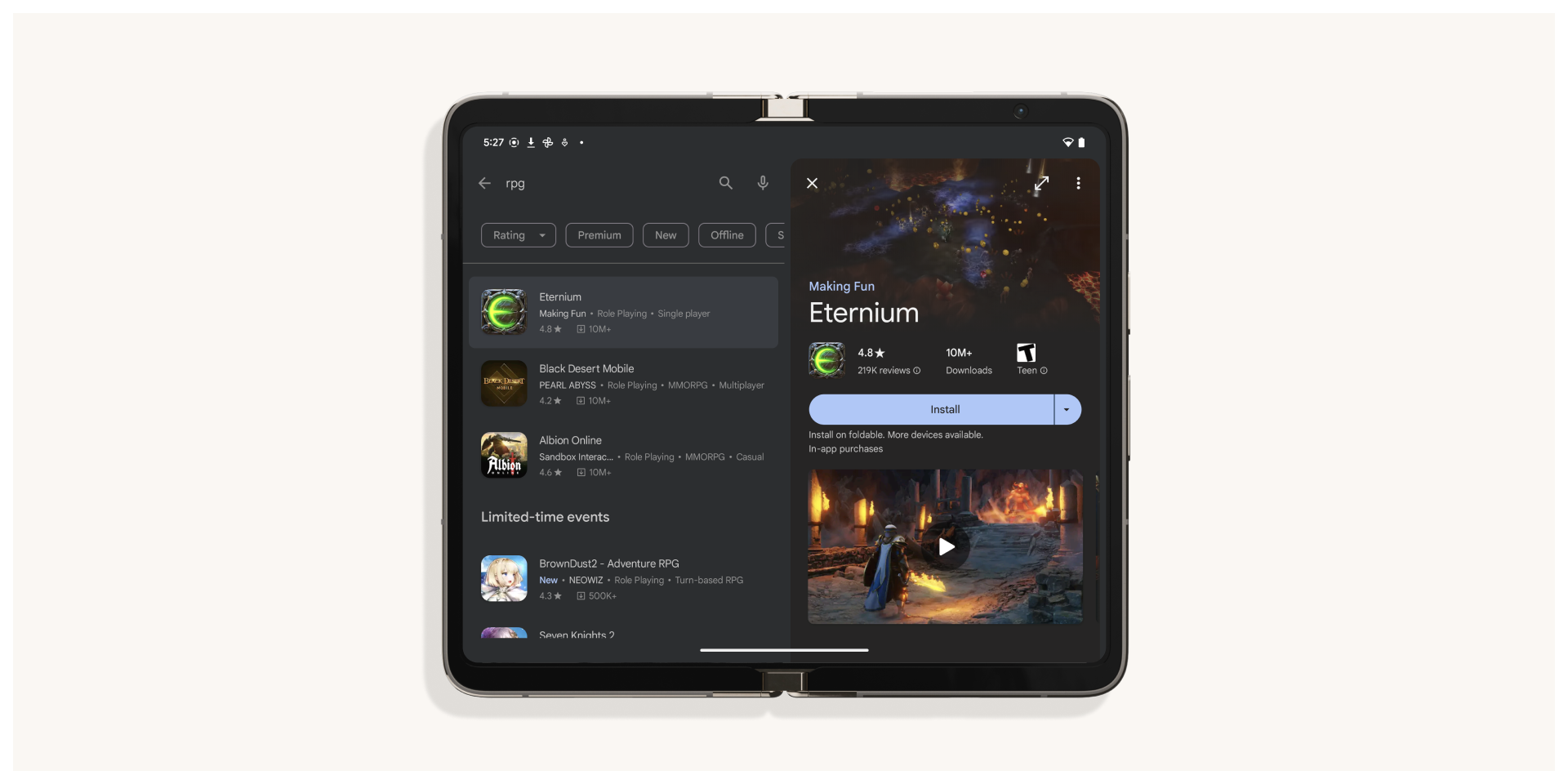Tablet users will also be able to take advantage of split-screen search on large screens, where search results and app details can be viewed side-by-side.