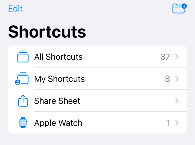 - Once you do that, hit the blue plus sign in the top-right corner of your screen to set up a new Shortcut.