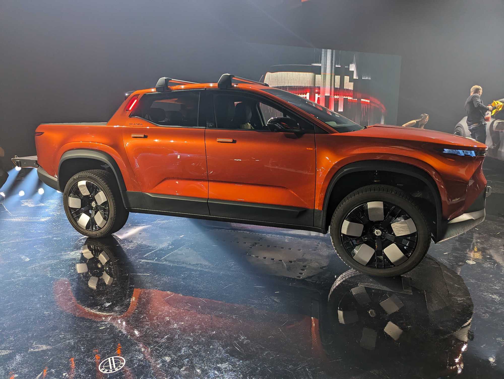 One unique feature of the PEAR is the rear tailgate which neither opens up or down like traditional tailgates. Instead, it slides down into the rear bumper and disappears. The company also refers to this as the “Houdini Trunk,” the same name it uses for a somewhat similar disappearing act in the pickup.