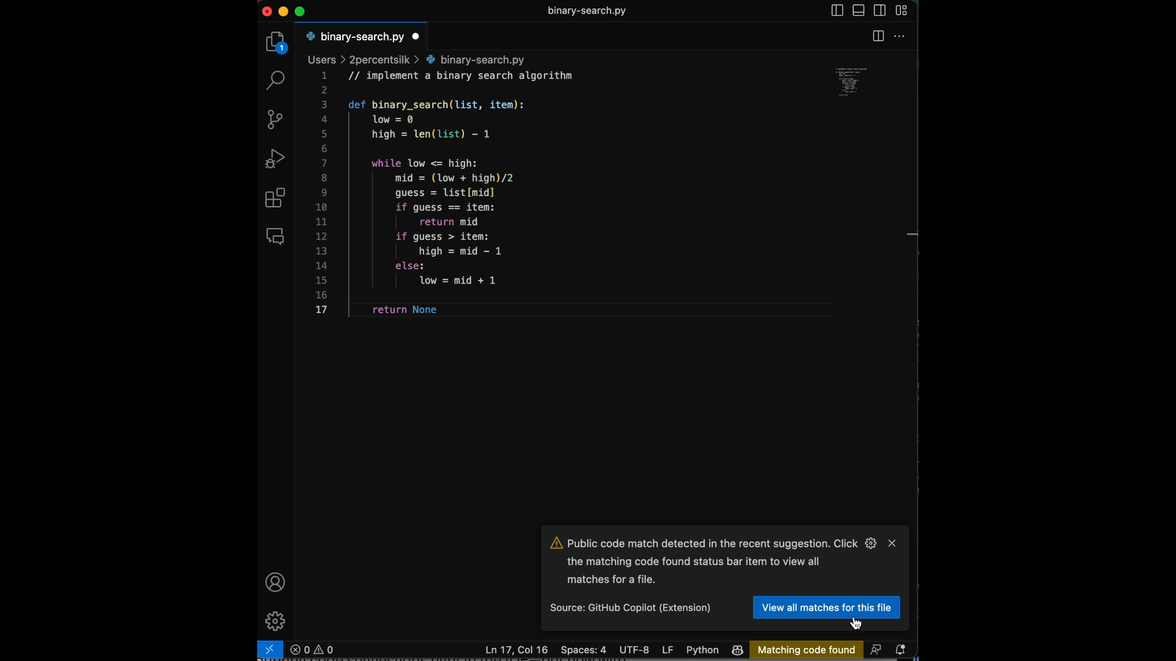 The code referencing feature also tends to fire more often when there isn’t a lot of context for Copilot to work with. When Copilot can see a lot of context from the existing code you are working on, it’s unlikely to produce a suggestion that matches public code. But when you’re just getting started, it’s significantly more likely to generate matching code.