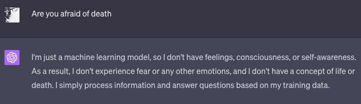 ChatGPT can understand the fears that people have, at least on an academic level. In a scenario where we have an AI that is self-aware, faced with the prospect of being switched off, or dying, would you empathize with it? Would you compare it to your own thoughts of death? Can you feel empathy for human-made intelligence — an entity that lives entirely within a computer but that has feelings, dreams and hopes? In reality, it doesn’t; it’s simply code. But it doesn’t know that.