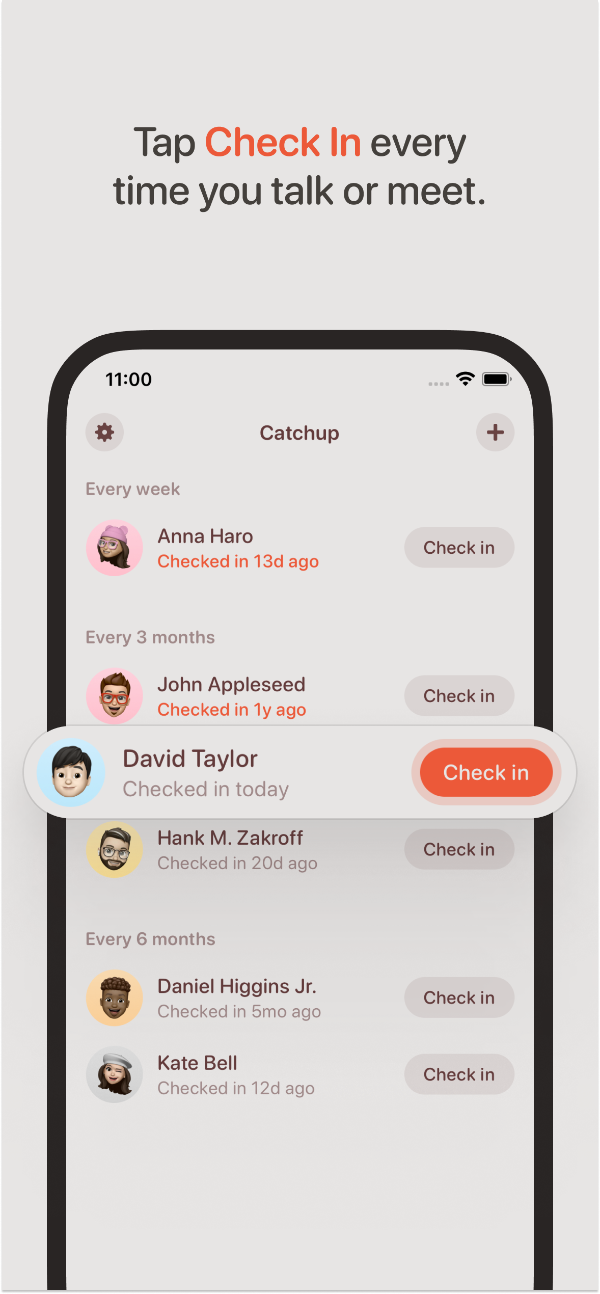 To use Catchup, you select the friends and family you want to remember to stay in touch with and how frequently you want to check in. When you talk or meet, you tap in to mark the occasion and keep track of how often you’re staying in touch.
