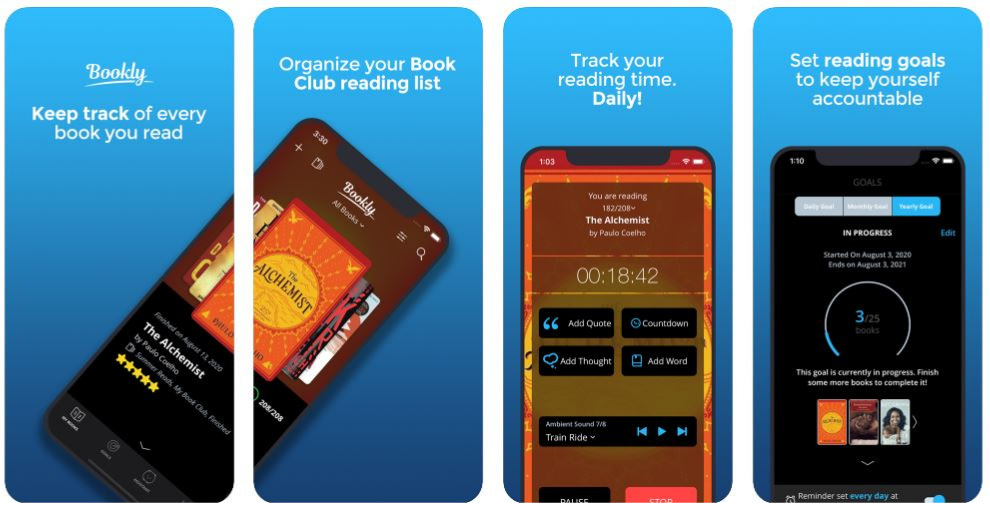 Bookly is a tracking and management app that helps users stay on top of their reading goals. Users can set up how many books they want to read in a month/year and how much time they want to read per day. They can also establish an end date goal for each book, so students can more effectively keep up with deadlines and assignments.