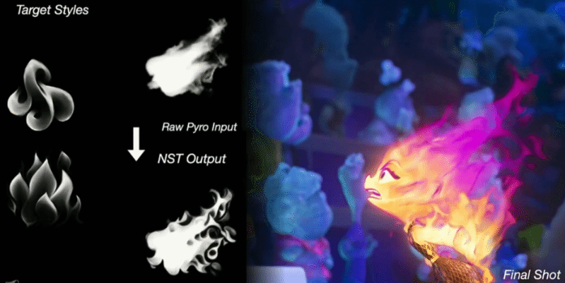 “If anyone ever tells you that Pixar used AI to make Elemental, that’s wrong,” said Pixar’s Paul Kanyuk pointedly during the presentation. “We used volumetric NST to shape her silhouette edges.”