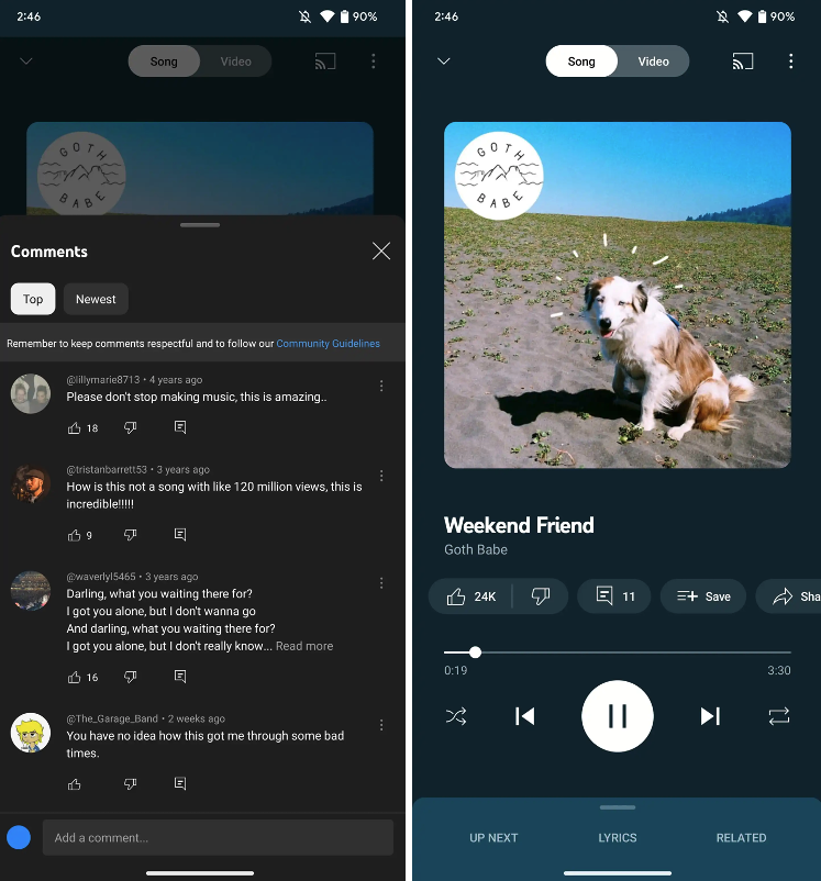 As spotted by 9to5Google, YouTube Music launched a new comments button that shows existing comments from the official music video on YouTube. Users can also type their own, which adds a more engaging social component to the app.