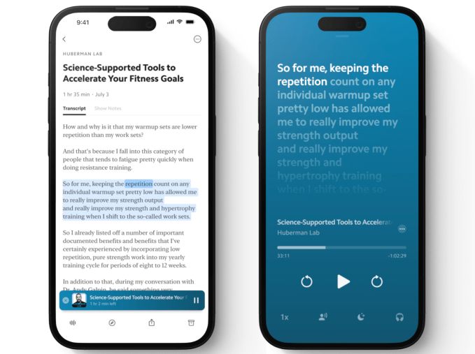 Or, if you’re trying to get through a dense podcast more quickly, the feature would allow you to skim the transcript so you could just jump to the key areas of interest, instead of having to fast-forward or listen to the audio at a faster speed.