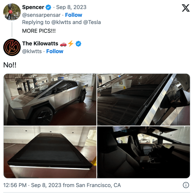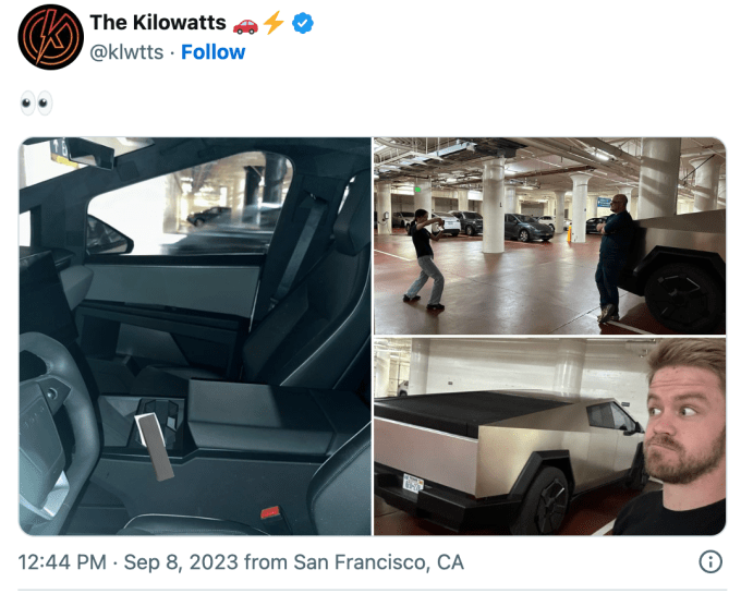 Back to what’s new, the Kilowatts’ photos depict a Cybertruck with what appears to be a different wheel and center console than what we saw back in May. It’s not clear whether this particular vehicle reflects how the Cybertruck will look once Tesla finally gets around to delivering them en masse.
