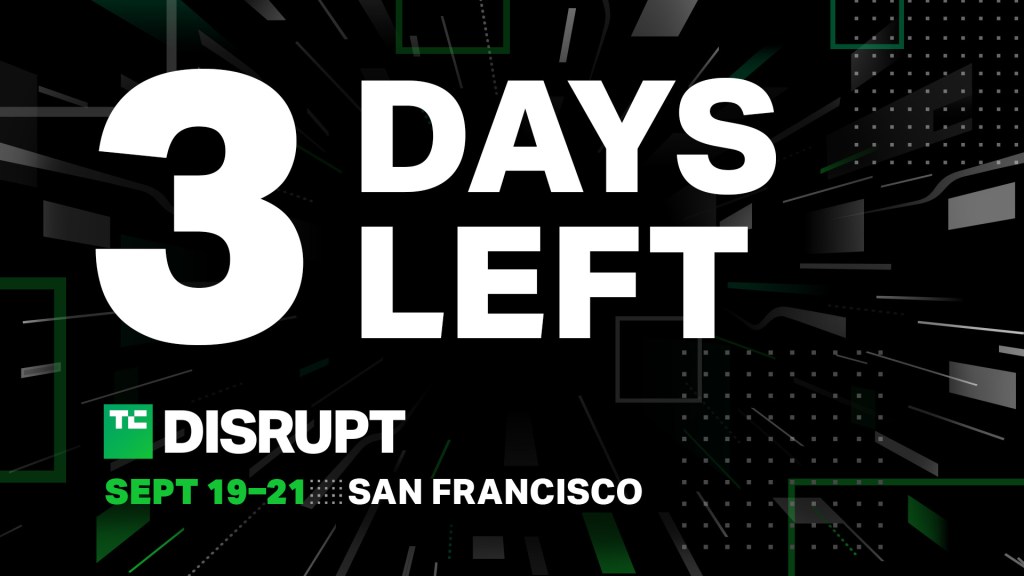 TechCrunch Disrupt 2023 takes place September 19–21. You have 72 hours left before passes inflate to full price. Buy your pass by September 15 at 11:59 p.m. PDT and save up to $400.