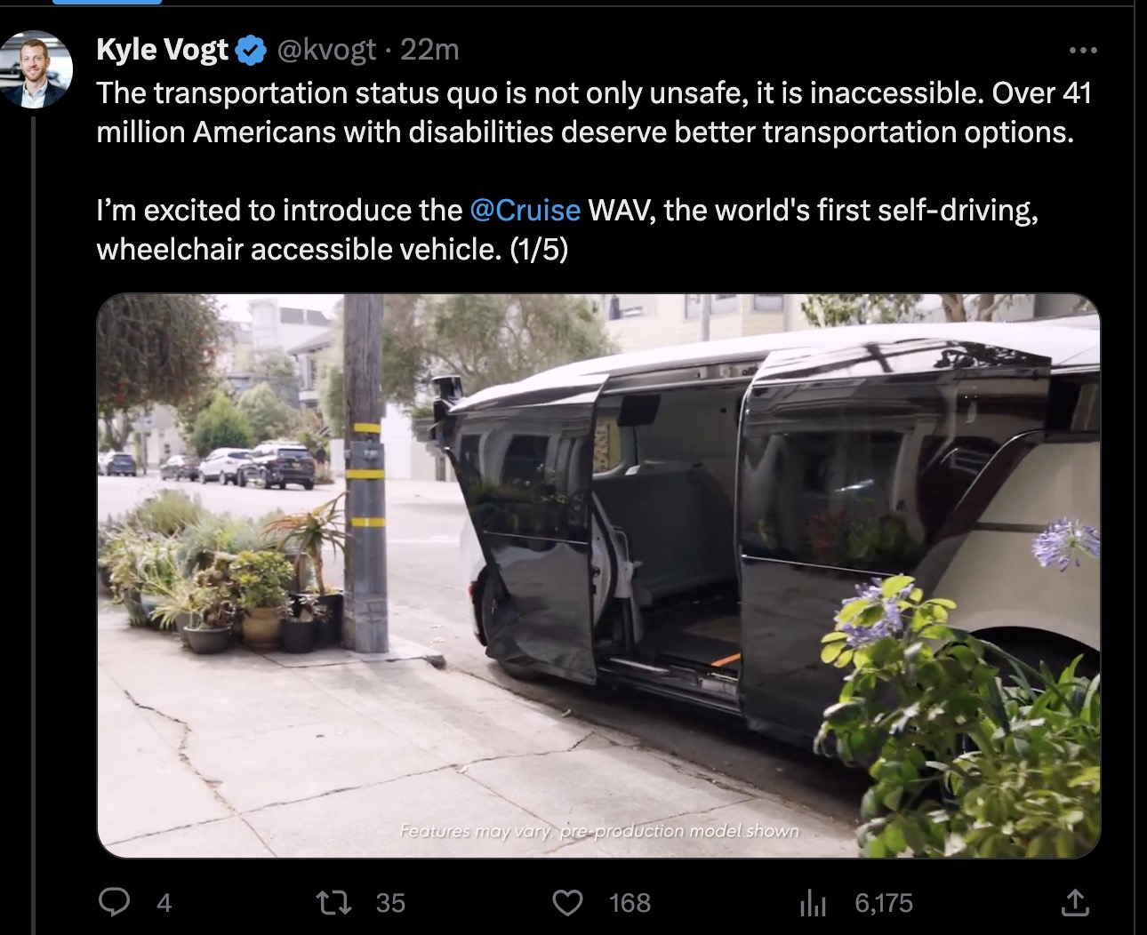 Cruise noted this is a generation-one version of the WAV. The company, working with the disability community, including members of its own Cruise Accessibility Council, said the goal is to make the vehicle accessible to even more users in future generations.
