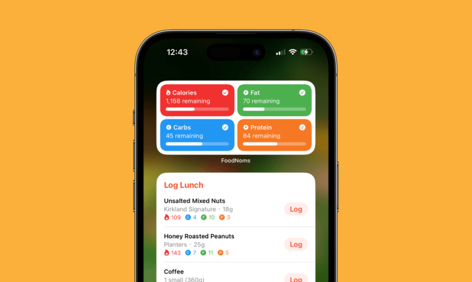 FoodNoms, a nutrition tracker that lets you scan barcodes and nutrition labels and keep track of advanced info, like macros, is offering two new interactive widgets in iOS 17 that let you log your favorite foods, water, coffee, recipes, and saved meals without even opening the app. The Log Food widget will let you log directly from the widget using the app’s Smart Suggestions algorithm, while the Favorites widget will make it easier to log favorite foods.