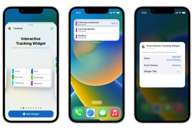 The time-tracking app Timelines will allow you to quickly stop and start timers by tapping its widgets on your Home Screen.