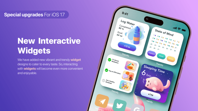 The new iOS 17 version of Themify’s customization app will include interactive widgets for the Home Screen and widgets for the StandBy screen. The company says a variety of interactive widgets will be available, including Tamagotchi widgets as well as interactive widgets with health app integration for logging water and coffee consumption, mood, steps, and more.