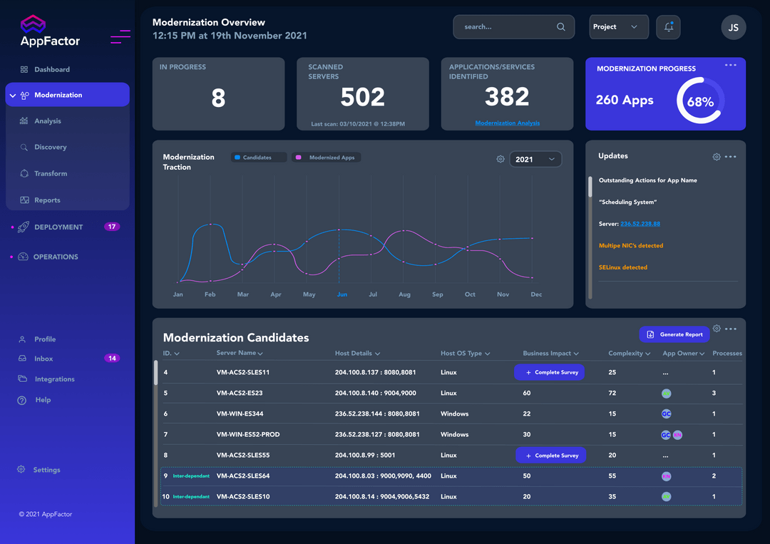 The company says it has been working with some commercial clients, including U.K.-based enterprise software company Civica. To date, only the “discover and assess” facet of its platform has been commercially available. However, the company is also gearing up to launch its “app modernization” module in November. So this means customers will have the ability not only to find suitable candidates for modernization, serving all the relevant reporting and analytics, but eventually enact the transformation itself.