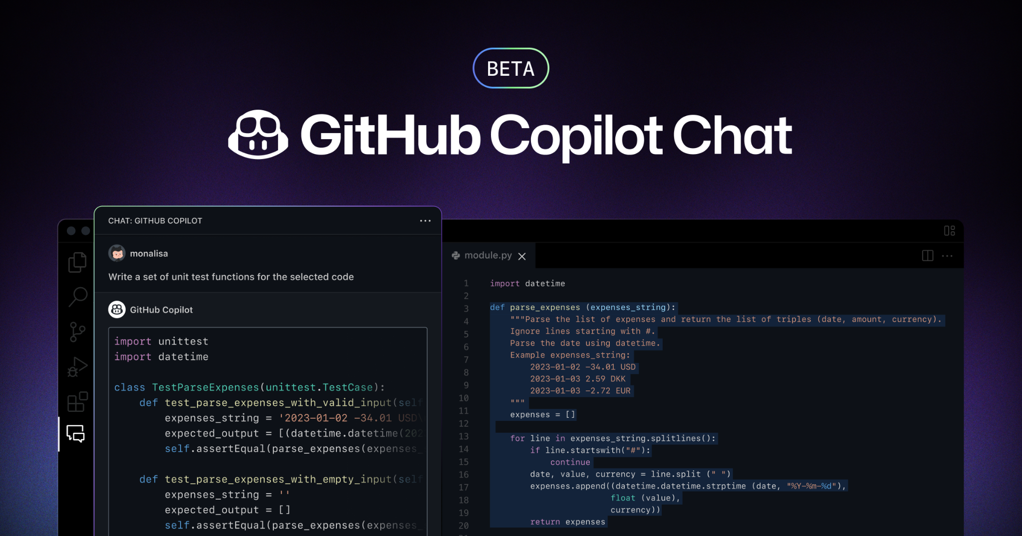 Three months ago, GitHub launched Copilot Chat, its ChatGPT-like programming-centric chatbot, out of private preview by making it available to organizations with a Copilot for Business subscription. Today, it’s taking this a step further by also opening up the Copilot Chat beta to all current GitHub Copilot for Individual subscribers in Visual Studio and VS Code. Copilot for individual users costs $10/month and Copilot Chat is a free addition to the existing subscription.