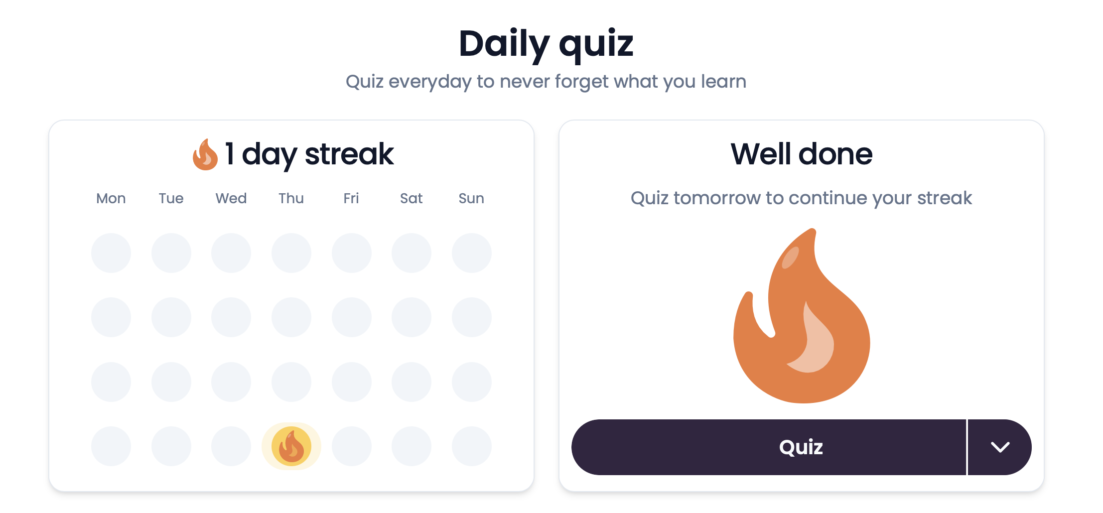 Like the language learning app Duolingo, Gizmo uses daily streaks to help keep users engaged. Every day, users have to answer a certain number of questions in order to achieve their streak for the day. There’s also a leaderboard where a user can see quiz grades and how they rank against their friends.