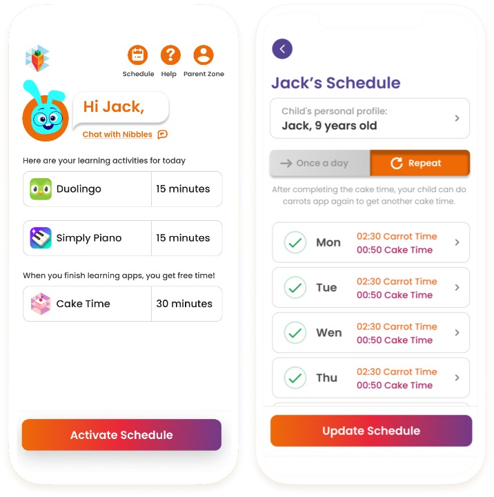 DePaolo says Carrots&Cake differs from other parental control apps because instead of focusing on simply limiting screen time, the app is designed to improve the quality of kids’ screen time. And while some other parental control apps allow children to keep notifying their parents for extra screen time, Carrots&Cake doesn’t let children do so.