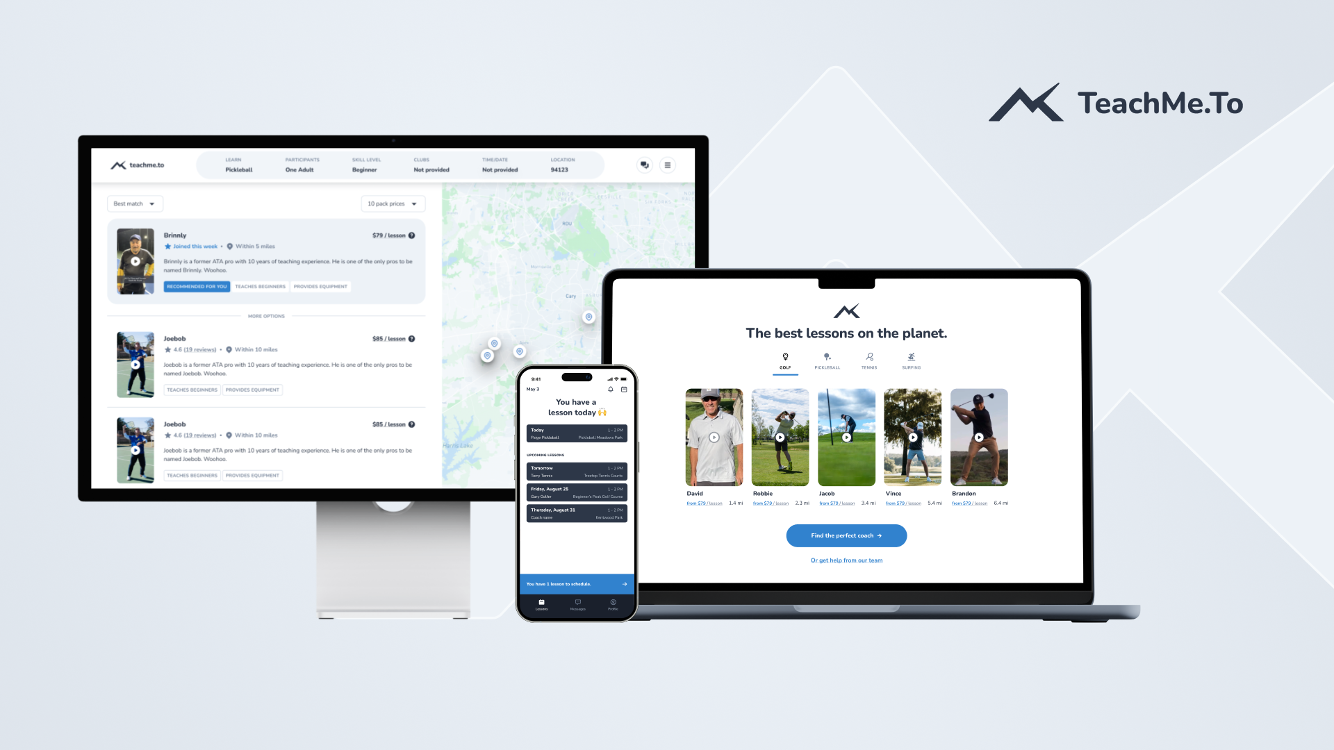 TeachMe.To provides access to local lessons in more than 100 U.S. cities from vetted coaches with expertise in pickleball, tennis, golf, surfing and boxing. The classes are tailored to each student and their goals, O’Brien explained. TeachMe.To also offers complimentary insurance and a “Love Your Lesson” money-back guarantee.