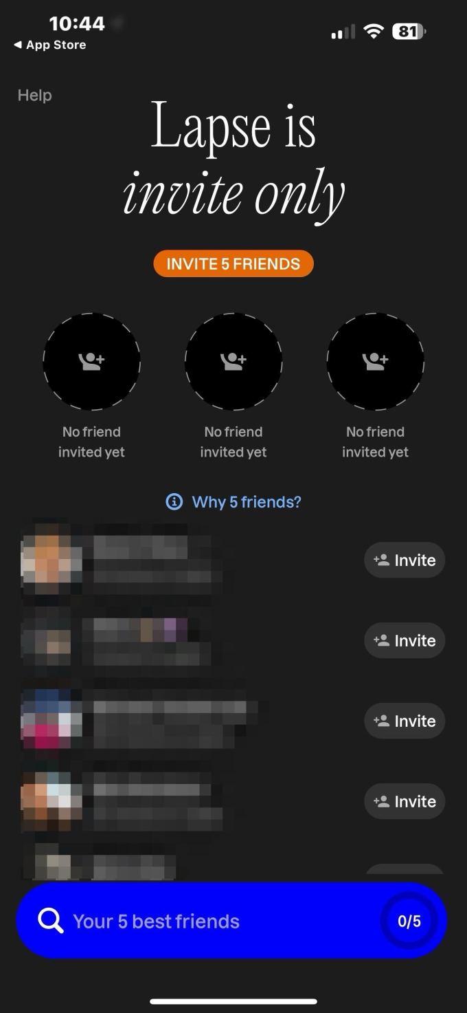 But Lapse is doing something different with its invites. Instead of just gating its app to only those with an invite, it’s actually requiring users to invite friends in order to start using its features.
