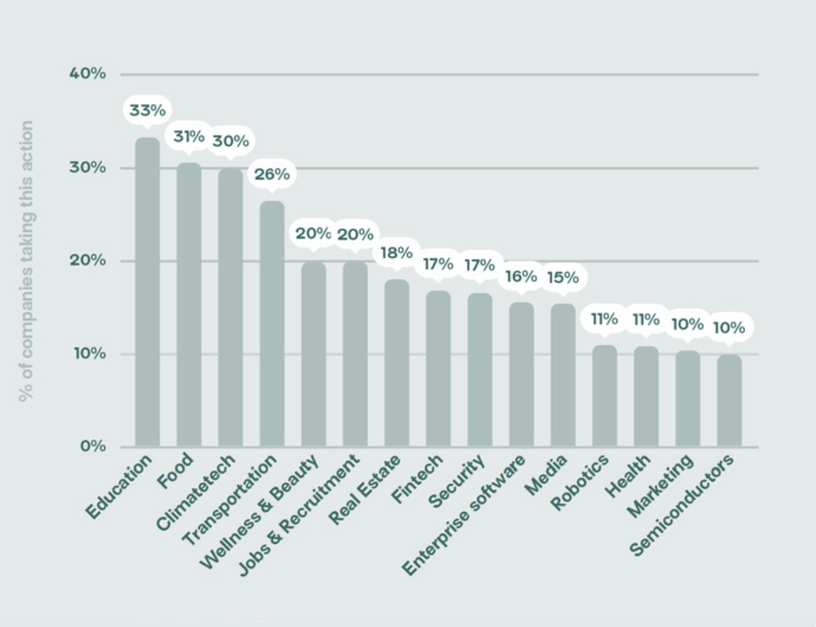 In the index, edtech companies scored the highest on average, followed by climate tech, food, transport and real estate.