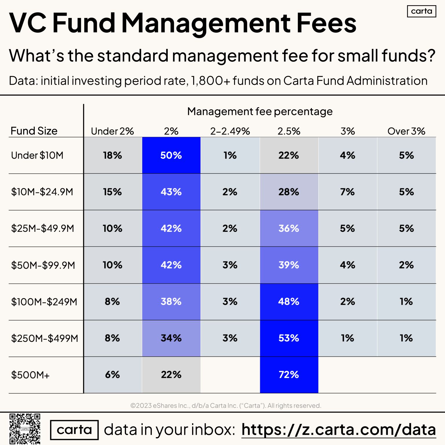 The management fee is a yearly charge calculated based on the total assets under management (AUM). Typically, the management fee is 2% of AUM, but new data from Carta shows that the 2% figure isn’t as universal as you might have been led to believe.