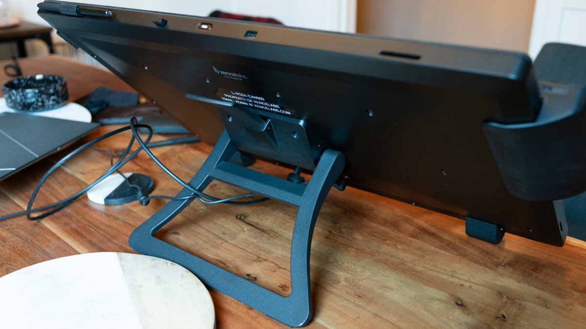 Xencelabs also bundles the display with a tilting stand that gives you plenty of options for using it both mostly upright as a traditional screen, or at a range of different angles comfortable for drawing on a desktop surface. Wacom, by contrast, only includes two integrated kickstand feet with the Cintiq Pro 24, which gives you just one slightly inclined angle for drawing without purchasing additional stand or arm-mounting options.