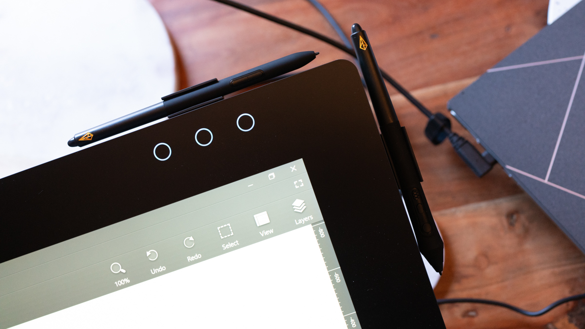The display is mostly reflection-free thanks to its etched glass matte surface, which also helps it feel a lot like drawing on traditional paper media. As mentioned, Xencelabs also includes two dfferent pens right in the box, including one with three buttons and a thicker grip, as well as a thin pen that’s lighter in the hand; both pens include erasers and there are a range of nibs in the box, including both standard and those designed to mimic felt nibs.