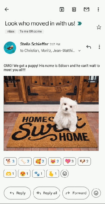 Rumors about emoji reactions coming to Gmail first appeared on industry insider AssembleDebug’s blog, TheSpAndroid and The Tape Drive with Steve Moser. AssembleDebug also demoed the feature in a YouTube video.
