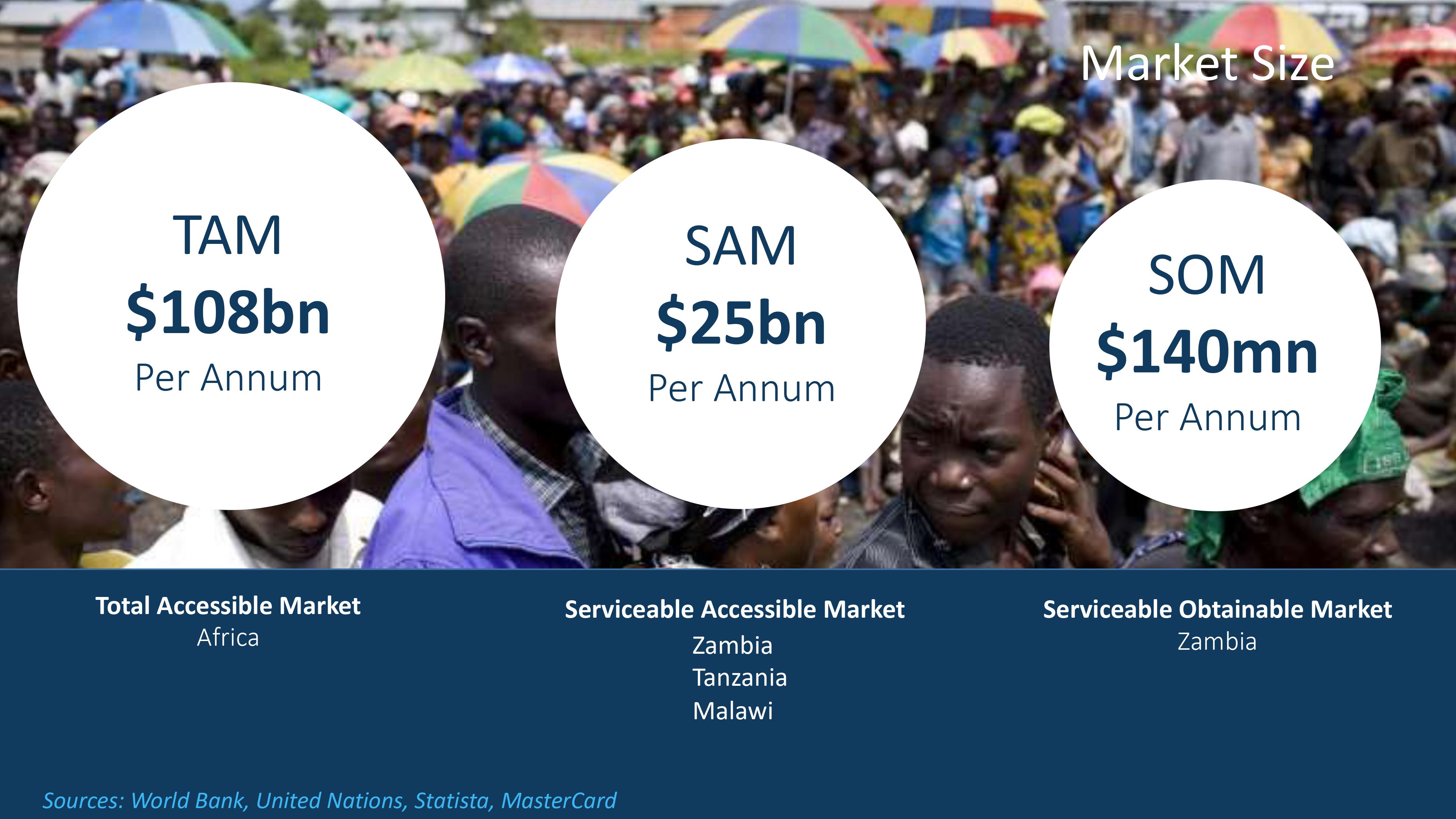 The worst assumption here, however, is the SOM (serviceable obtainable market): It seems like the company is saying it is poised to hoover up the entire Zambian market. That is unlikely, since even the best player in a market will have competition and will not be able to penetrate the entirety of it.