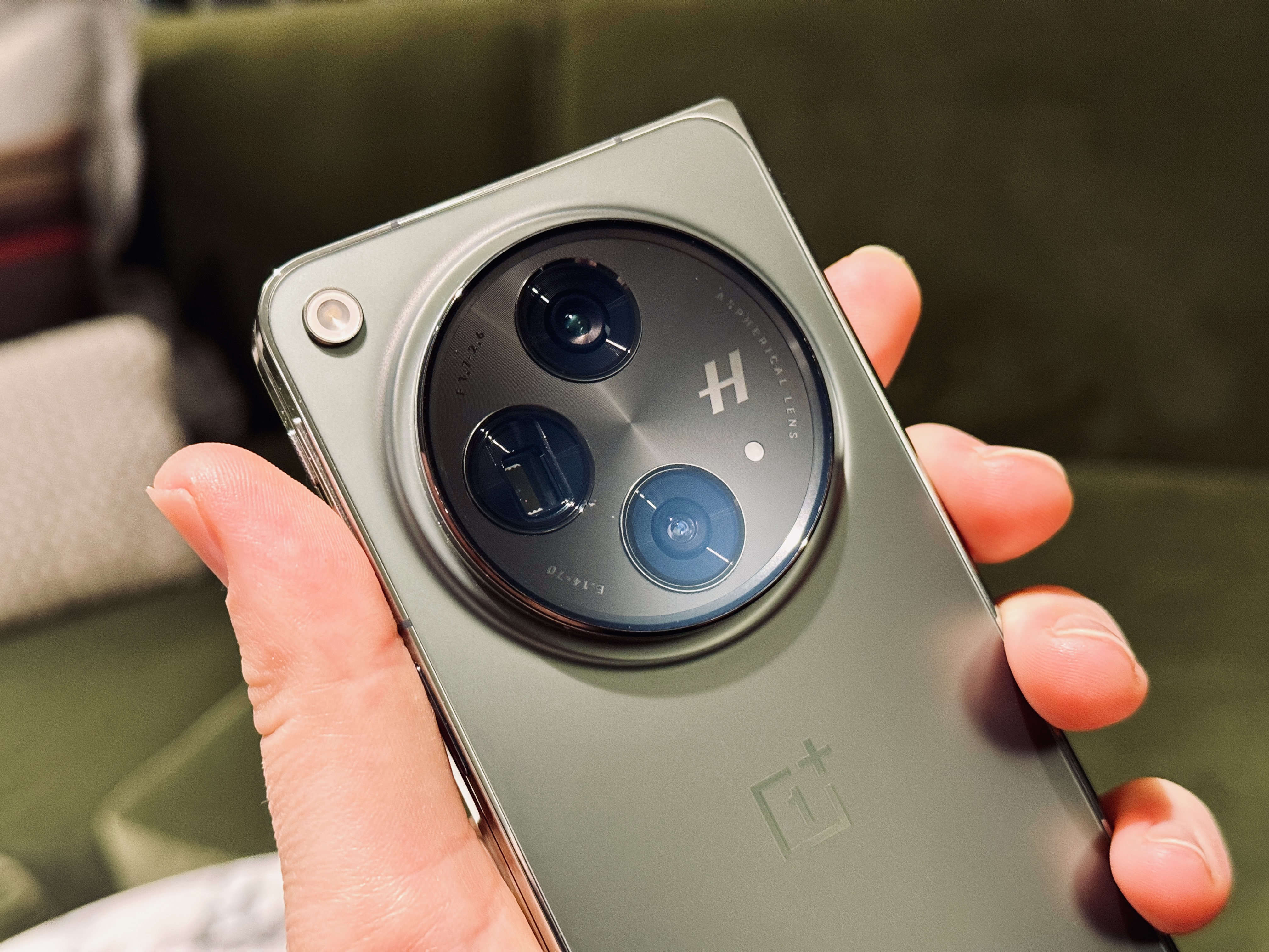 With the Open, it’s a big circular bump that monopolizes most of the device’s upper back. There are three large camera rings and a small flash. It also, naturally, sports a big Hasselblad logo, as part of that three-year deal the companies announced back in 2021. The primary camera is 48 megapixels (Sony’s new LYT-T808 sensor) and sports built-in optical image stabilization. That’s coupled with a 48-megapixel ultra-wide that features autofocus. The third is a 64-megapixel that performs “lossless zoom” up to 6x.