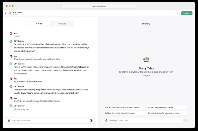 OpenAI said that it plans to let users publish these GPTs to a store — coming later this month — as well. It will initially have creations from “verified builders.” The company’s CEO Sam Altman also talked about paying people with popular GPTs.