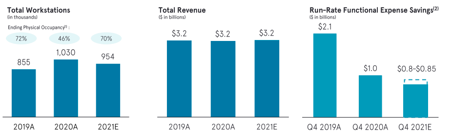 Cognizant of the weaknesses that everyone noticed when it first tried to go public, WeWork stressed “recent cost optimization efforts” that would help it achieve “profitable growth in 2021 and beyond” in its SPAC presentation.