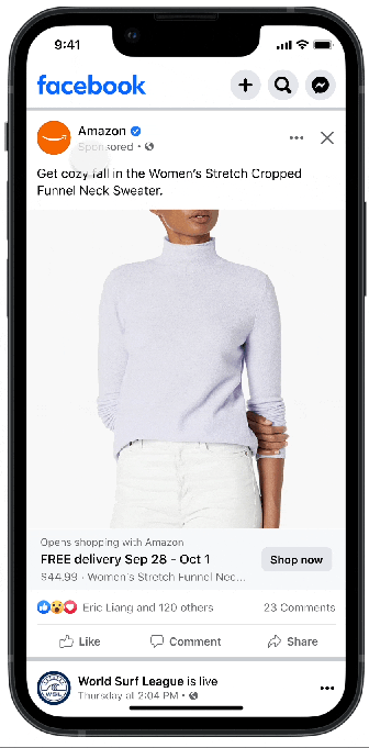 To get started, it’s a quick one-time setup where customers will link their Meta account (either Facebook or Instagram), to their Amazon account. After this process is complete they can check out with Amazon from the product ad itself, without leaving their Facebook or Instagram app. Their default shipping address and payment information from Amazon will be used to complete the sale.